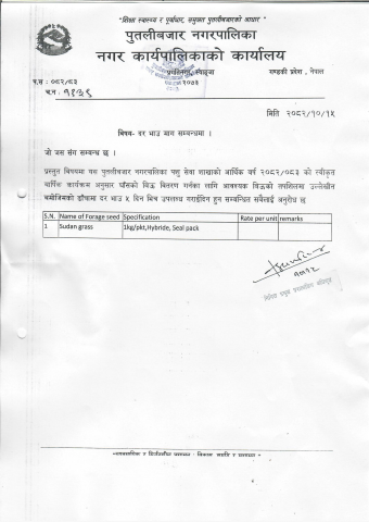 बोलपत्र स्वीकृत सम्बन्धी आशयको सूचना !