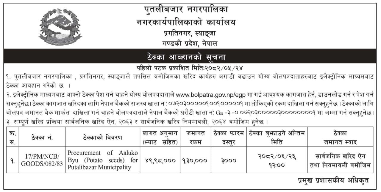 ठेक्का आव्हानको सूचना ( आलुको बिउ )