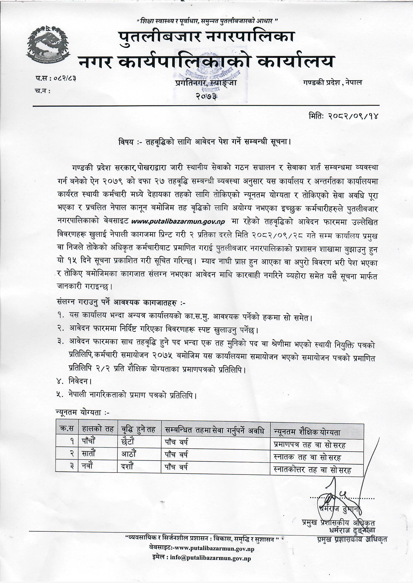 तहवृद्धिको लागि आवेदन पेश गर्ने सम्बन्धी सूचना !