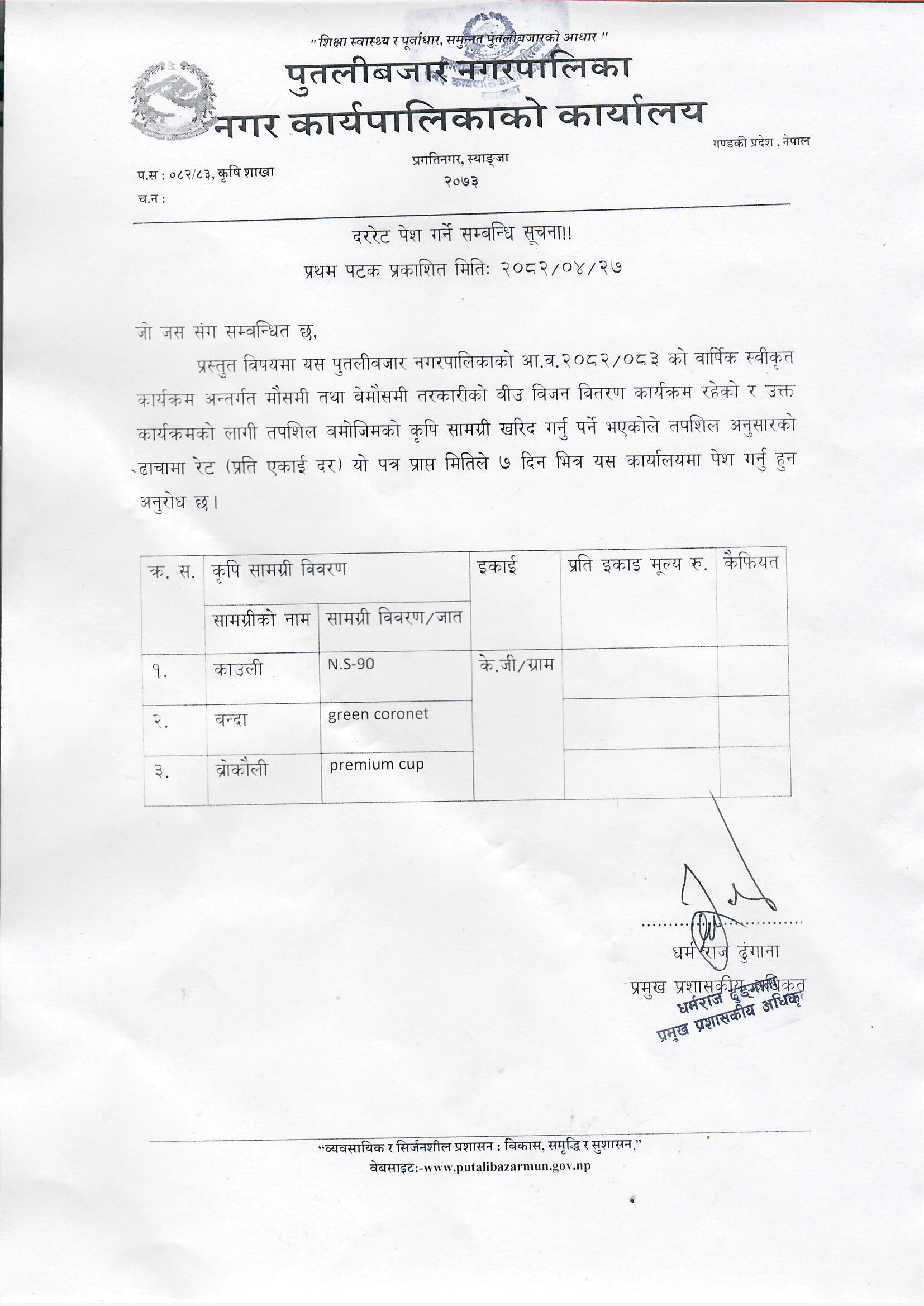 दररेट पेश गर्ने सम्बन्धी सूचना !(मौसमी तथा बेमौसमी बीउ वितरण कार्यक्रम )