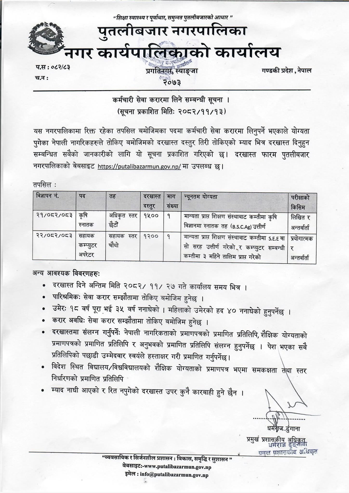 कर्मचारी सेवा करारमा लिने सम्बन्धी सूचना !
